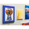 Yes! The hanging hardware is included in the packaging (two screws and two plastic anchors) to hang on wall in any room. Also, the Eye Candy Frame is manufactured with a built-in stand to stand on a table, desk or shelf.